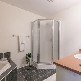 The light here is something I have always loved. It pours through the windows and glass doors, making even ordinary days feel special. The living and dining areas are open enough that everyone stays connected, whether you are cooking, chatting, or relaxing together. And when the weather warms up, the balcony and lower patio become the heart of the home. Surrounded by gardens and tall trees, the patio is perfect for barbecues, reading, or enjoying a glass of wine at the end of the day.